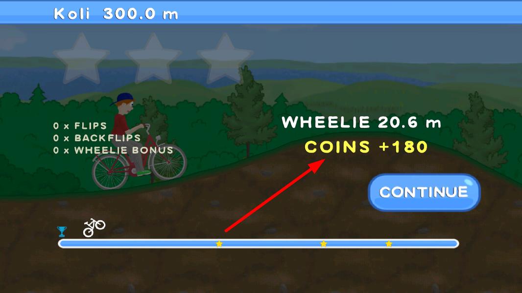 2、闖關過程中,努力延長車輪離地的距離以賺取獎金,利用金錢提升自行車的功率、重量等屬性,或購買新自行車增強性能。