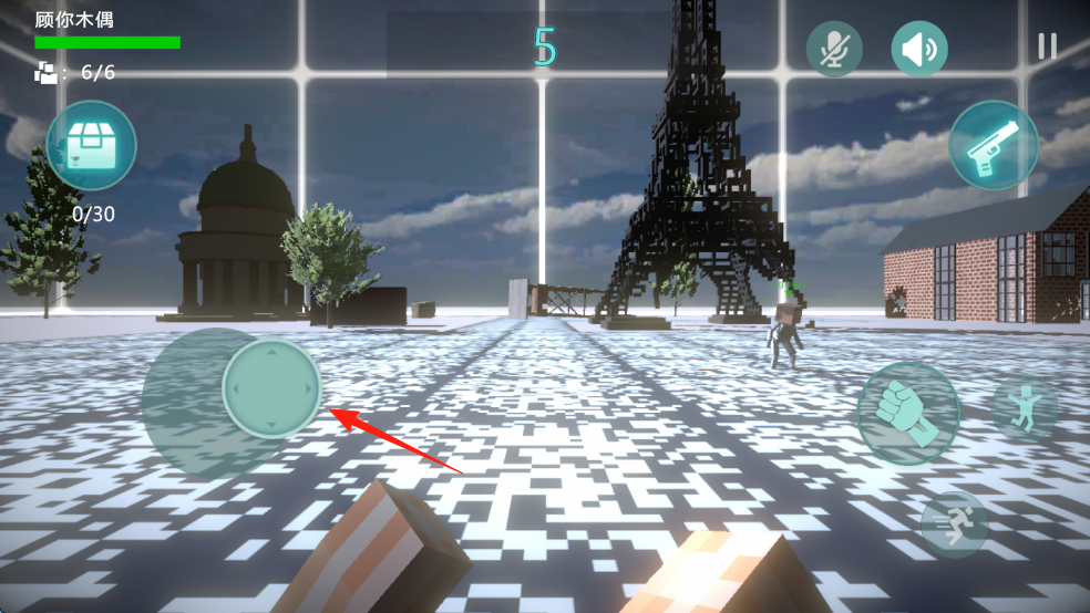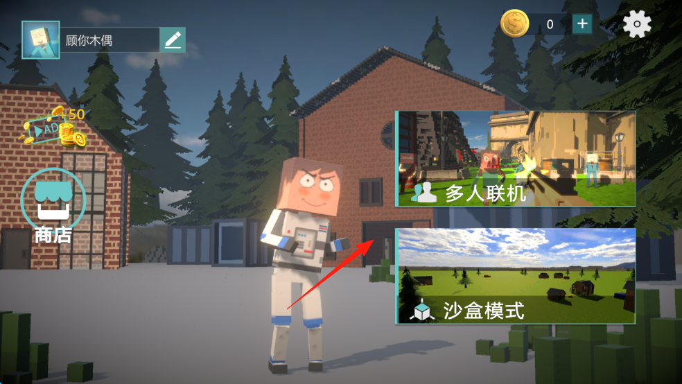 1、主界面選多人聯(lián)機(jī),進(jìn)入像素城市戰(zhàn)場(chǎng),用左側(cè)搖桿移動(dòng)角色,右側(cè)按鈕切換武器、攻擊。