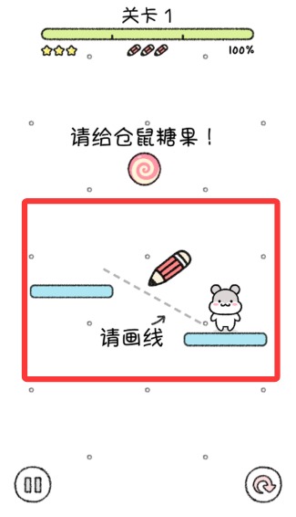 4、開始游戲后畫線幫助倉鼠拿到糖果。