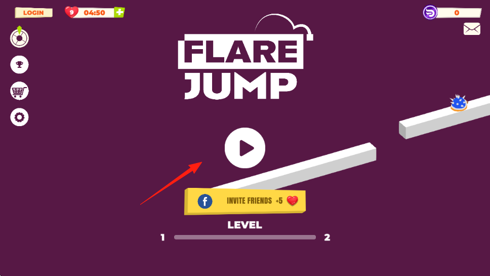 3、成功將旗幟插桿,通關(guān)解鎖新關(guān)卡,可邀請好友INVITEFRIENDS獲愛心體力,提升跳躍技巧挑戰(zhàn)高難度。
