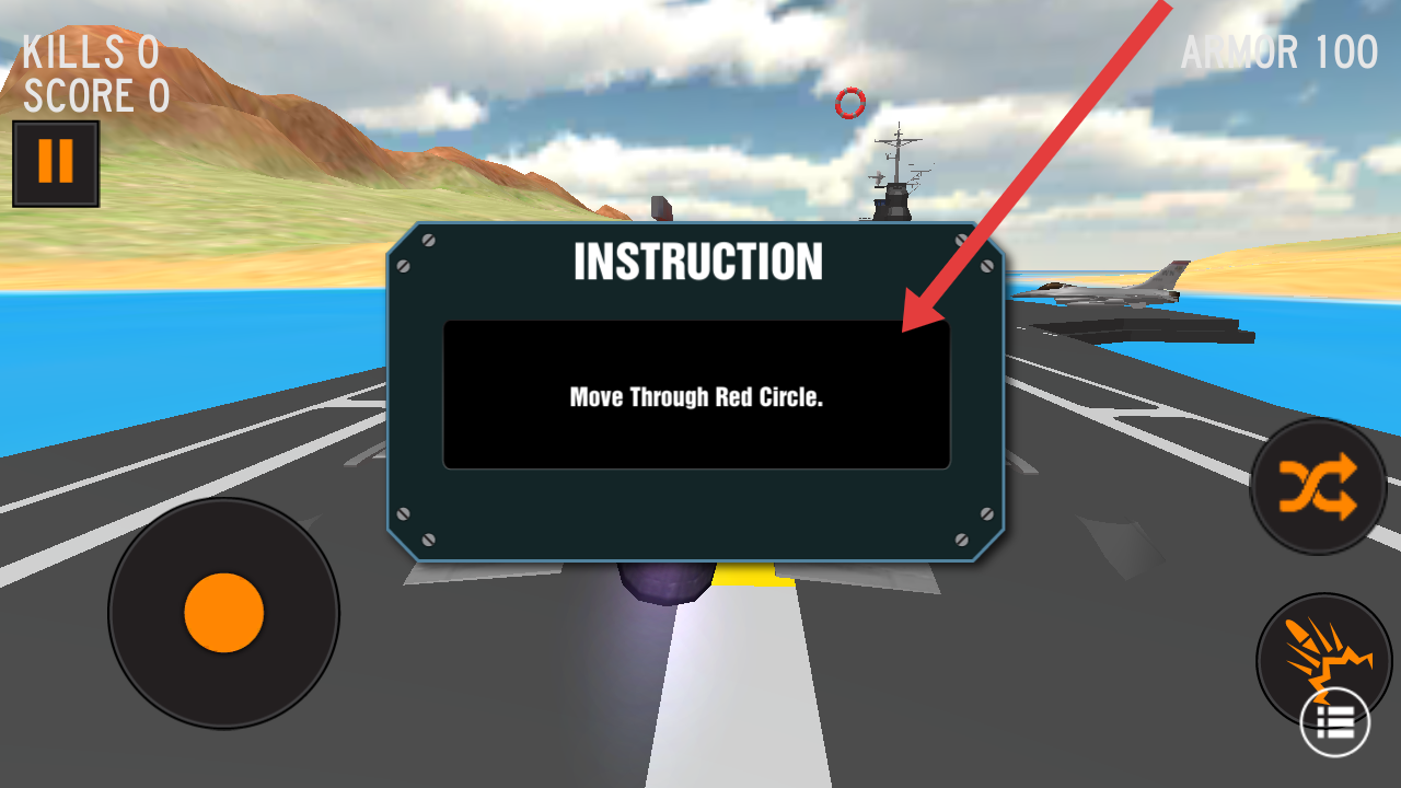 1、根據(jù)系統(tǒng)的指令Move Through Red Circle,操控戰(zhàn)機朝紅色圓環(huán)方向飛行,完成引導(dǎo)任務(wù)。