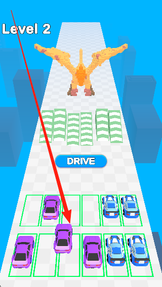 1、顏色匹配核心明確:以相同顏色小汽車為合并依據(jù),目標清晰,玩家能快速聚焦核心操作,通過識別顏色推進挑戰(zhàn),減少認知成本。
