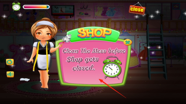 3、接收清潔任務(wù)清理店鋪,在關(guān)店前打掃雜物,完成目標(biāo)體驗限時清潔玩法。