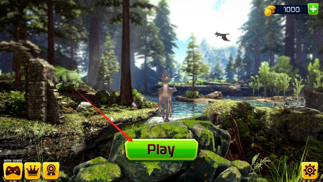 1、在游戲啟動界面,點擊Play,開啟恐龍射擊冒險之旅,點擊按鈕進入到游戲中。