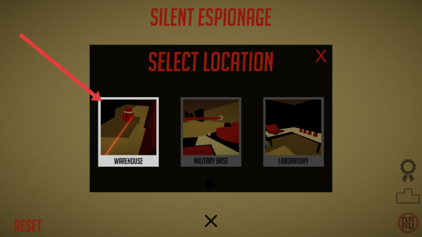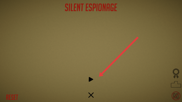 1、在游戲初始界面,通過(guò)點(diǎn)擊中間三角形播放按鈕,啟動(dòng)Silent-Espionage間諜潛入冒險(xiǎn)游戲。