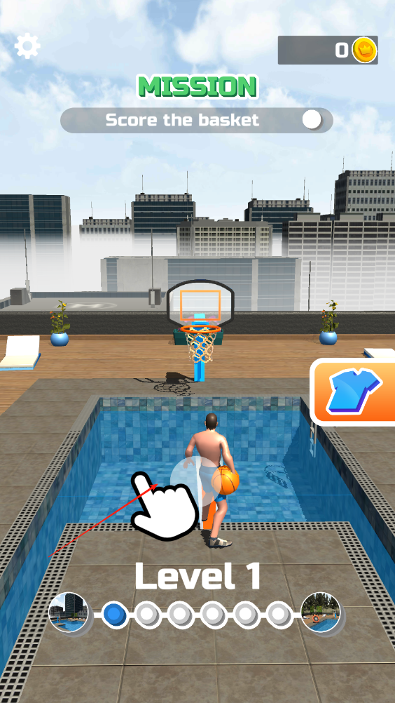 2、軌跡規(guī)劃與精準(zhǔn)投籃:觀察籃筐位置和角度,用手指畫出合適的投籃軌跡,利用線條的弧度和力度控制球的飛行路徑,確保球能精準(zhǔn)投入籃筐,完成投籃任務(wù)。