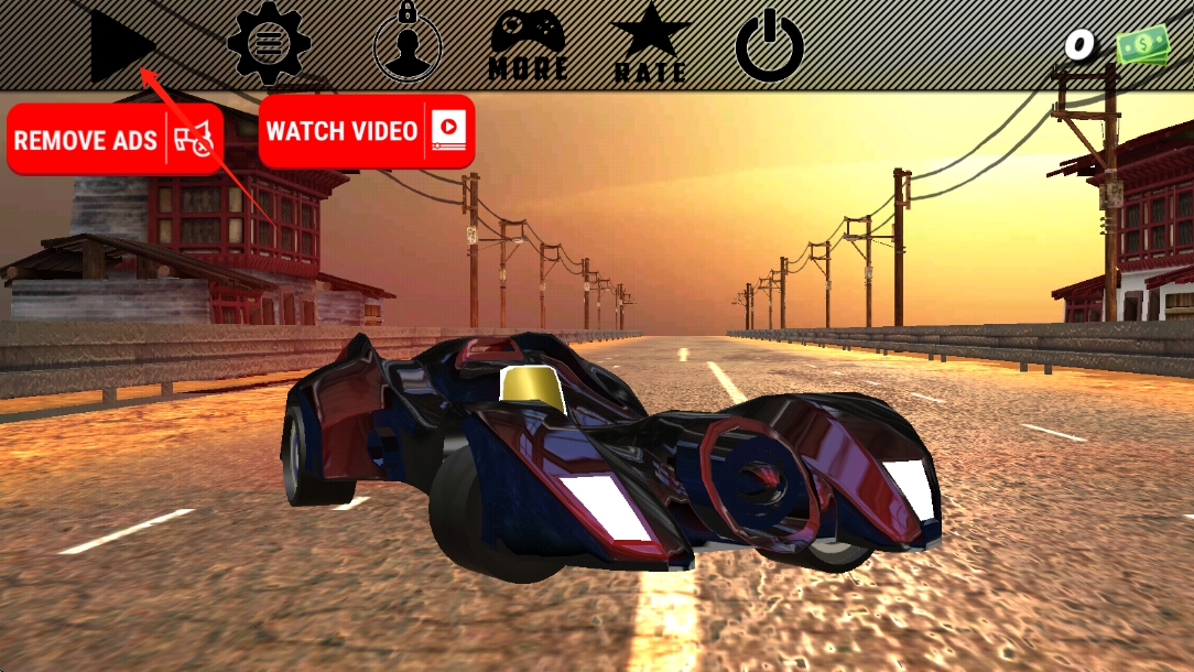1、在游戲啟動界面,點(diǎn)擊開始按鈕,開啟刺激的賽車之旅,點(diǎn)擊按鈕開始游戲。