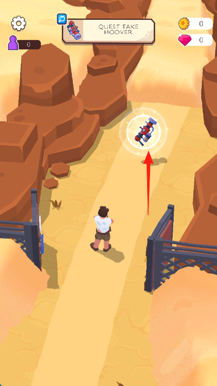 1、進入游戲到主界面,控制角色移動,前往紅箭頭指向處,獲取QUESTTAKEHOOVER任務道具。