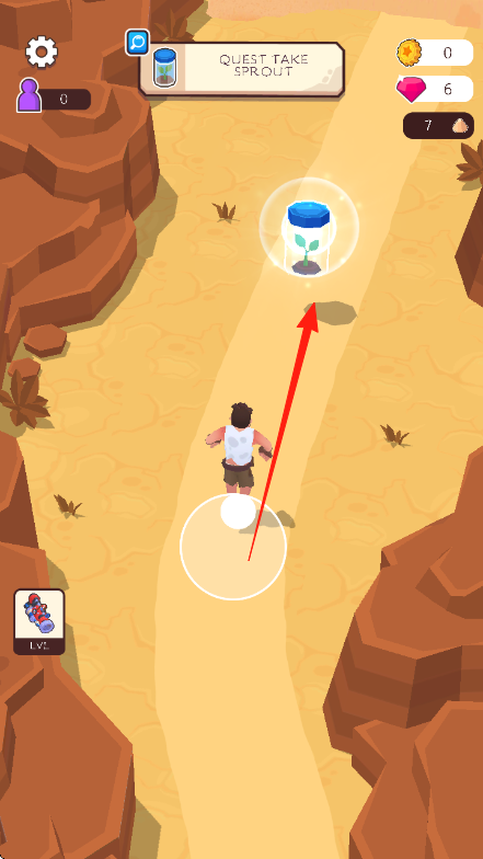 2、在游戲過程里會出現(xiàn)不同的道具,操控角色走向紅箭頭所指位置,拾取QUESTTAKESPROUT任務物品。