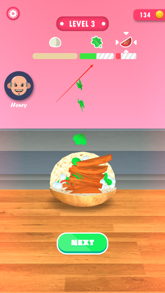 2、上方顯示顧客對(duì)配料的要求及數(shù)量,長(zhǎng)按即可落下食材,看著進(jìn)度條及時(shí)松手避免放多,且進(jìn)入下一項(xiàng)食材的擺放。