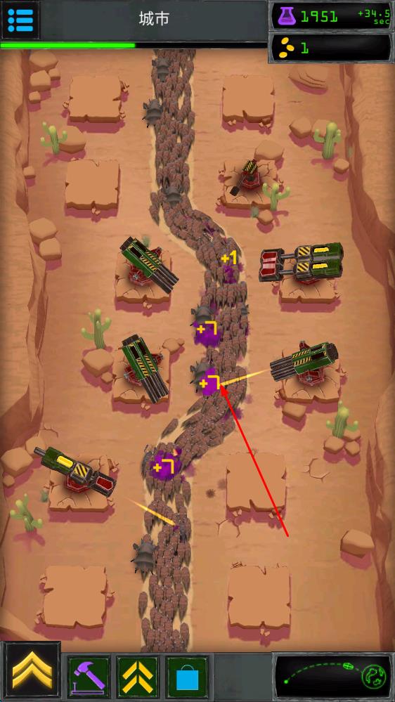2、戰(zhàn)斗過程中,利用殺死敵軍獲得的生物質(zhì),投資新炮塔并將兩個(gè)相同的炮塔融合,升級(jí)為更強(qiáng)的炮塔,提升整體防御能力。