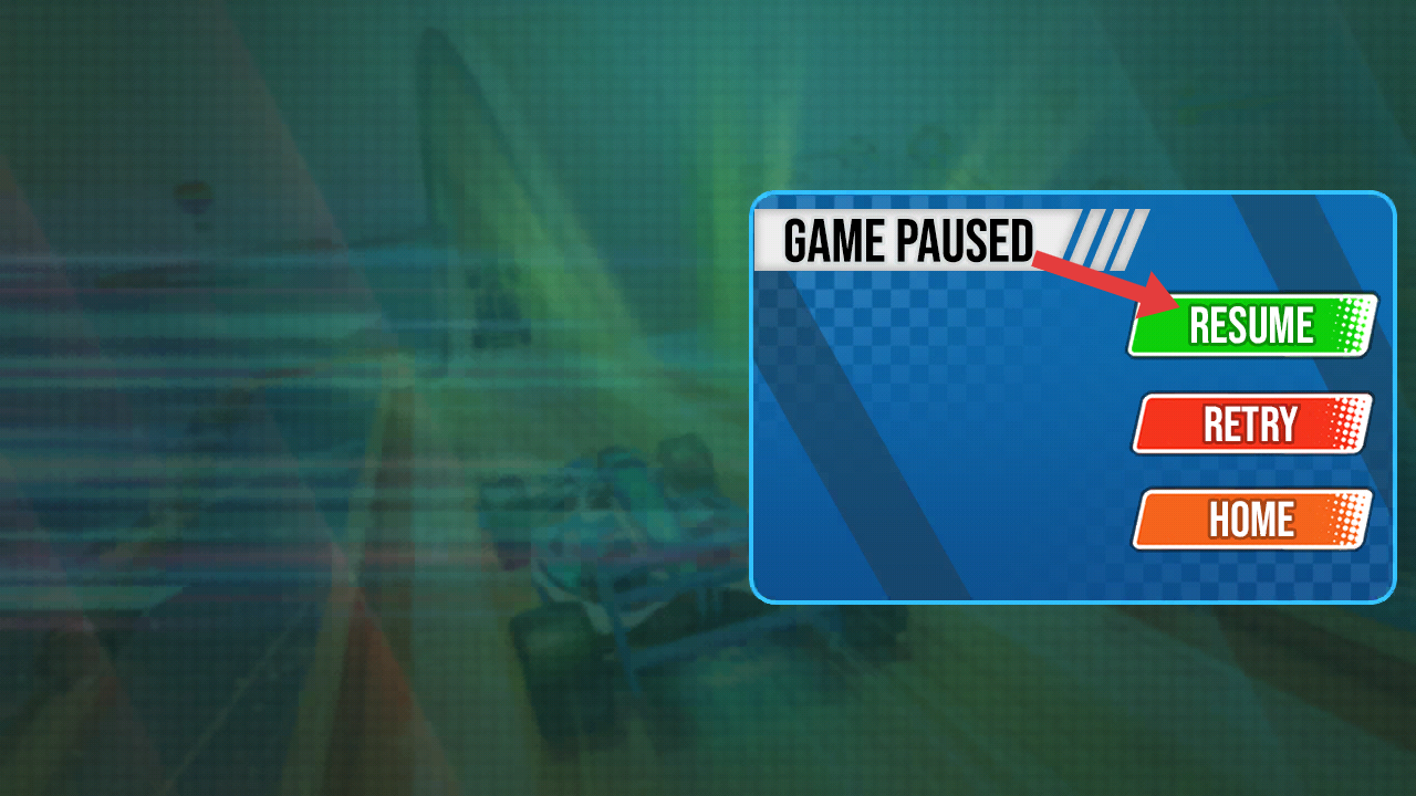 3、游戲暫停時(shí),點(diǎn)擊RESUME按鈕即可繼續(xù)比賽,還可以選擇點(diǎn)擊第二個(gè)按鈕重新進(jìn)行比賽的進(jìn)程。