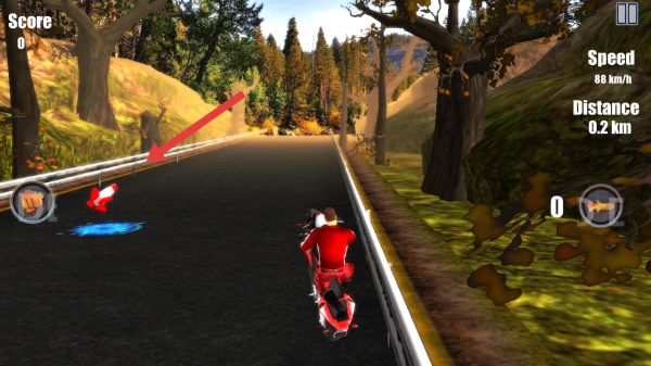 1、開局進(jìn)入游戲,需要操控摩托一直往前行駛,靠近收集道具來獲取增益,助力后續(xù)騎行挑戰(zhàn)。