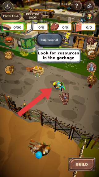 1、點擊開始后方可進(jìn)入游戲,根據(jù)操作提示:點擊廢品進(jìn)行收集,獲得很多的廢品資源。