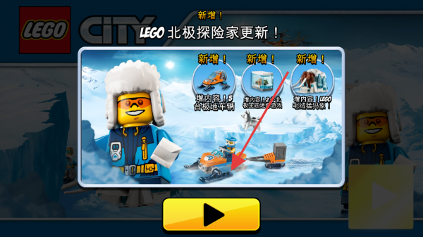 1、這是一款名為LEGO CITY的游戲,點(diǎn)擊黃色播放按鈕,即可進(jìn)入游戲,開啟你的樂高城市冒險(xiǎn)之旅。