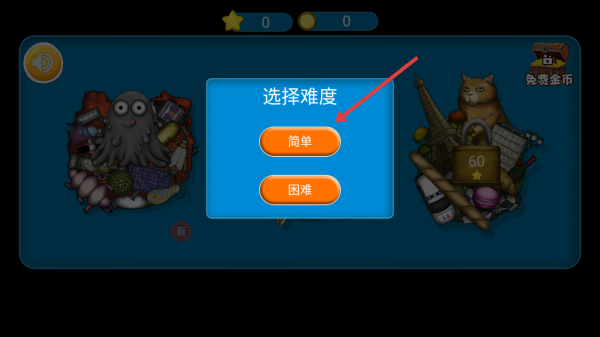 1、點(diǎn)擊山體場(chǎng)景下橙色開始游戲按鈕,跳轉(zhuǎn)至難度選擇界面,開啟這款含怪物山體元素的卡通風(fēng)格游戲,正式進(jìn)入挑戰(zhàn)流程。
