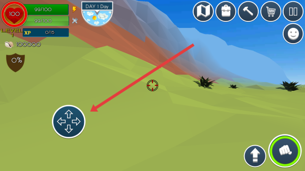 2、游玩過(guò)程中可以通過(guò)左側(cè)方向搖桿,操控角色在草原移動(dòng),不斷探索世界,尋找可砍伐的樹(shù)木。