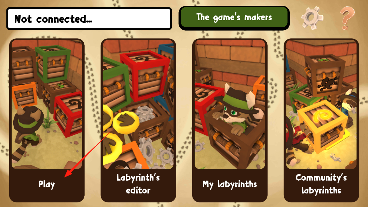 1、點(diǎn)擊Play選項(xiàng)進(jìn)入關(guān)卡選擇,此操作會(huì)加載預(yù)設(shè)迷宮場(chǎng)景,玩家可操控角色在迷宮中探索,開(kāi)啟冒險(xiǎn)流程。