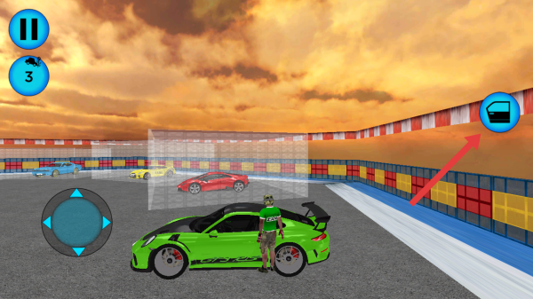1、開局進(jìn)入游戲,需要靠近車輛點(diǎn)擊右側(cè)車門的圖標(biāo),進(jìn)入綠色賽車,做好賽前的一切準(zhǔn)備。