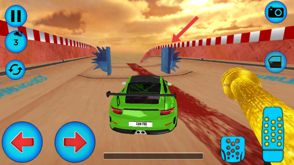 2、在賽道行駛時,需要操控駕駛的方向避開周圍的尖刺障礙,防止車輛受損,拖累駕駛速度。