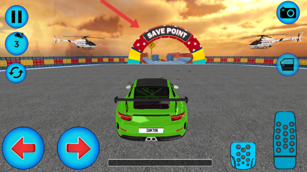 3、駕駛自己的賽車駛向前面SAVE POINT的拱門,抵達(dá)保存點(diǎn),完成一段路程后保存進(jìn)度。