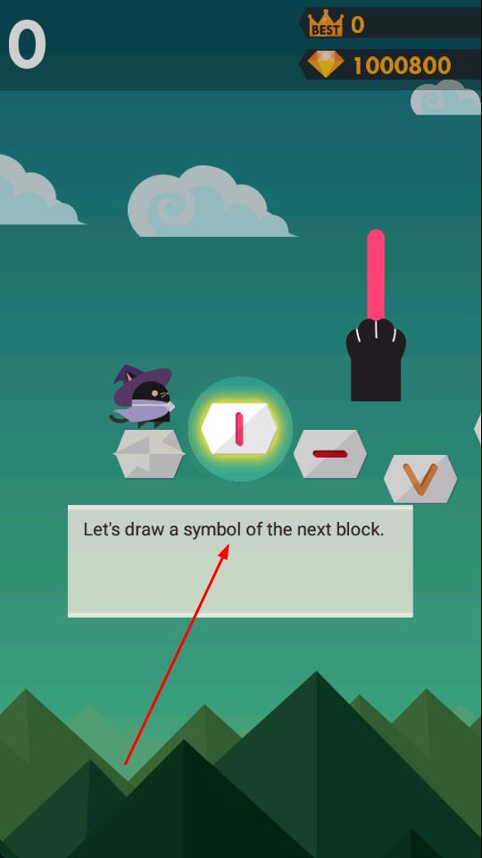 1、依據(jù)提示Let's draw a symbol of the next block,在繪圖區(qū)繪制對(duì)應(yīng)符號(hào),助力黑貓巫師跳躍至目標(biāo)方塊,就正式開啟冒險(xiǎn)進(jìn)程。