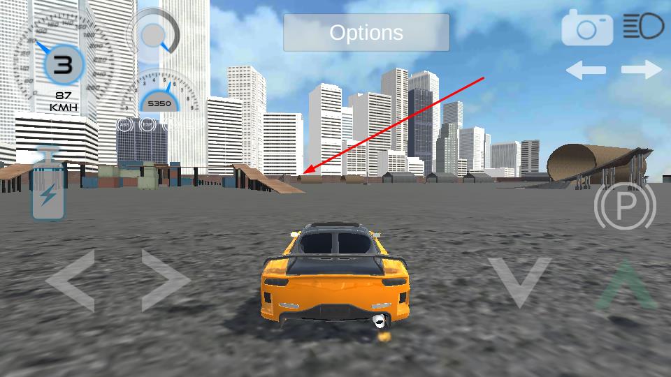 2、游戲內通過左下角箭頭按鍵控制轉向,右下角箭頭按鍵控制加速,觀察左上角速度表KMH與轉速表數(shù)據(jù),調整行駛狀態(tài)。