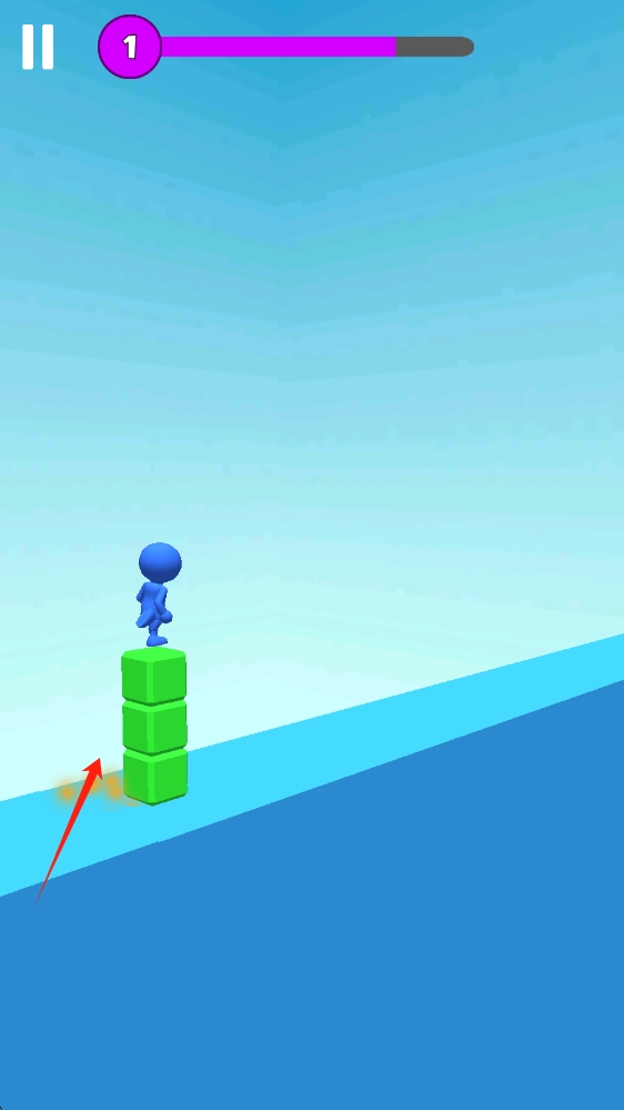 2、游戲中,靈活操控藍色小人在綠色方塊上跳躍前進,注意避開危險,同時關(guān)注上方紫色進度條,努力推進游戲進程。