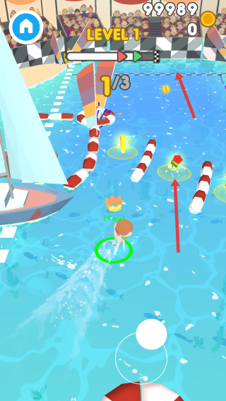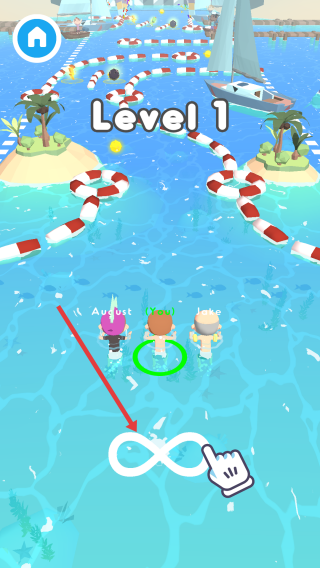 1、在游戲開始時,按照提示進行操作,滑動屏幕,讓角色開始在水中移動,開啟游泳挑戰(zhàn)。