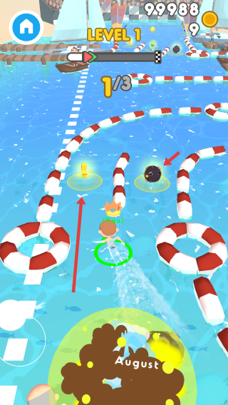 2、在游泳過程中,收集場景中的道具,同時避開障礙物,努力提升自己的分數(shù)。