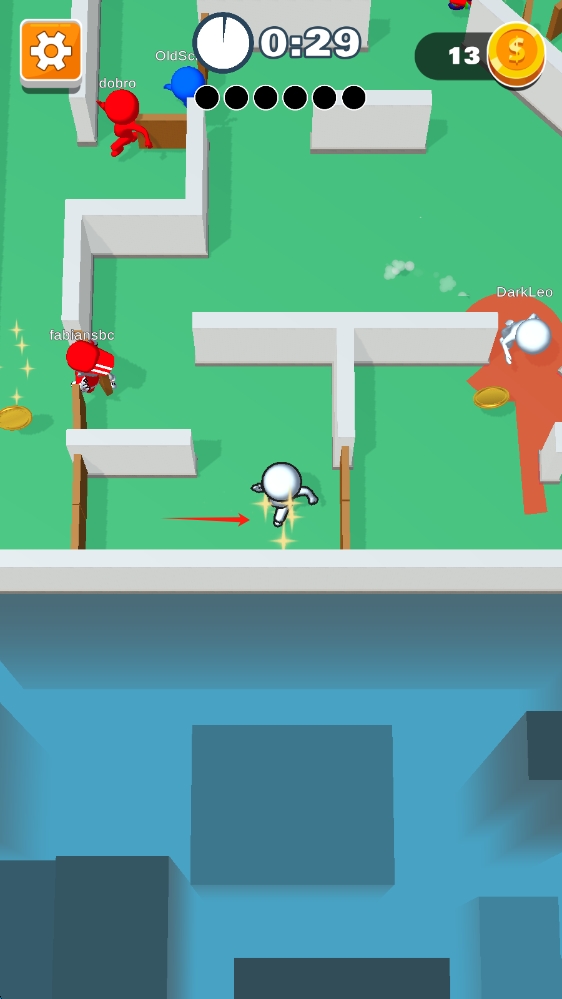 2、進(jìn)入HIDE模式操作界面后,通過虛擬方向鍵控制白色小人在迷宮中移動(dòng),時(shí)刻關(guān)注剩余時(shí)間和金幣數(shù)量,靈活躲避紅色小人追捕。