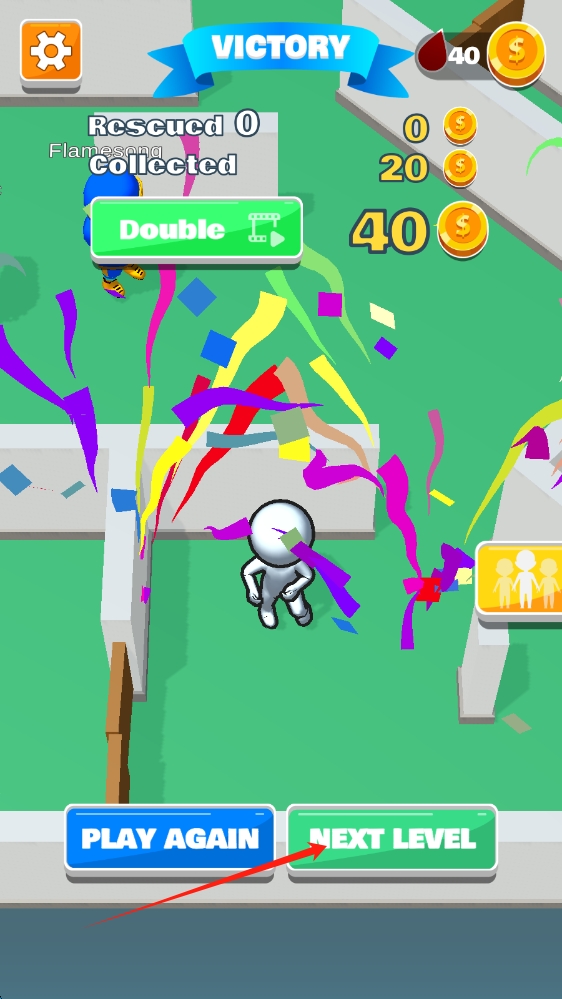 3、當(dāng)取得游戲勝利,進(jìn)入勝利界面時(shí),可根據(jù)需求選擇PLAY-AGAIN再次挑戰(zhàn)當(dāng)前關(guān)卡,或點(diǎn)擊NEXT-LEVEL開啟新的關(guān)卡挑戰(zhàn)。