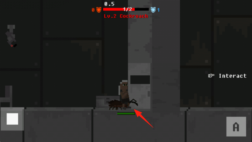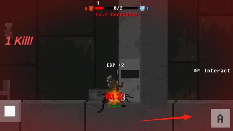 2、遇【Lv.2Cockroach】點(diǎn)擊【A】鍵攻擊利用掩體閃避完成擊殺獲【EXP+2】升級(jí)角色。
