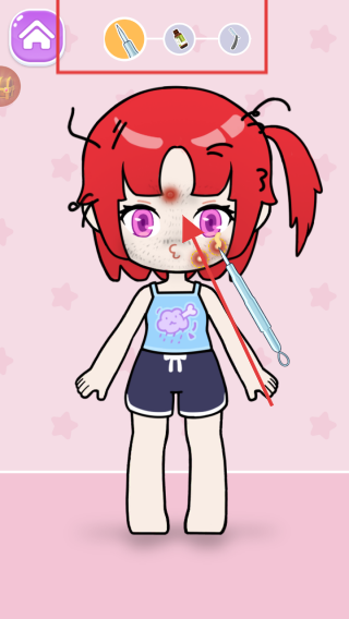 2、進入美容界面后,利用上方的美容工具,為角色進行皮膚護理,去除痘痘等皮膚問題,讓角色皮膚變得光滑細膩。