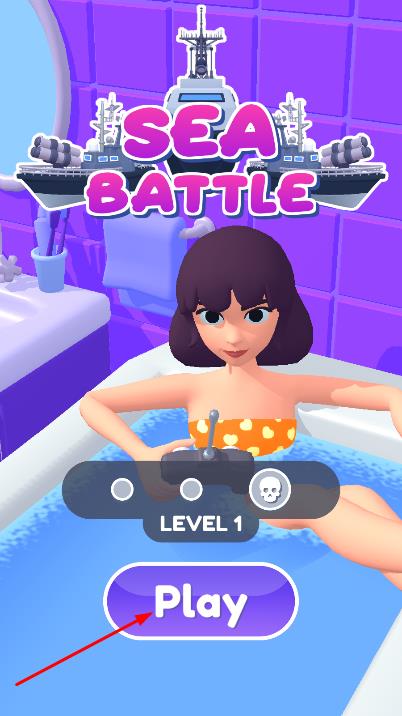 1、進(jìn)入游戲,在初始界面,點(diǎn)擊Play按鈕,進(jìn)入關(guān)卡后,通過操控器控制自己的軍船,瞄準(zhǔn)并攻擊敵方軍船。
