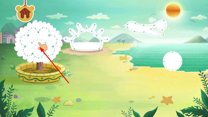 2、按照屏幕上的提示,用手指在屏幕上滑動,連接相應的點,完成圖案的繪制。