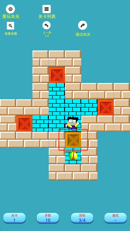 1、箱子路徑規(guī)劃:觀察木箱與目標(biāo)格子的直線距離,避開墻體和其他箱子的阻擋,通過先推邊緣箱再推核心箱的思路,規(guī)劃最優(yōu)推動(dòng)順序,減少無效操作。