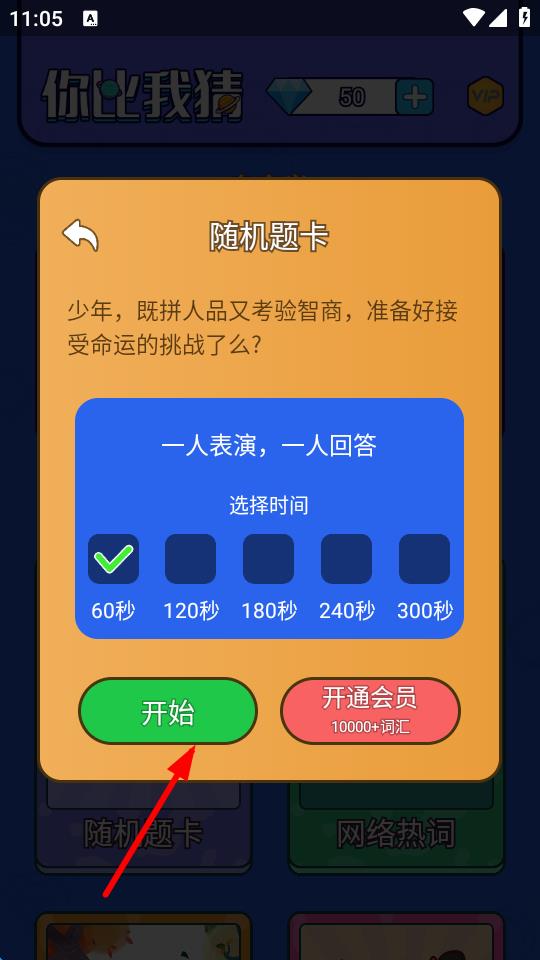 1、進(jìn)入游戲后,系統(tǒng)隨機(jī)分配詞語(yǔ)給首位表演者,表演者需在60秒內(nèi)選擇繪畫(huà)或動(dòng)作模式,快速構(gòu)思表達(dá)方案。
