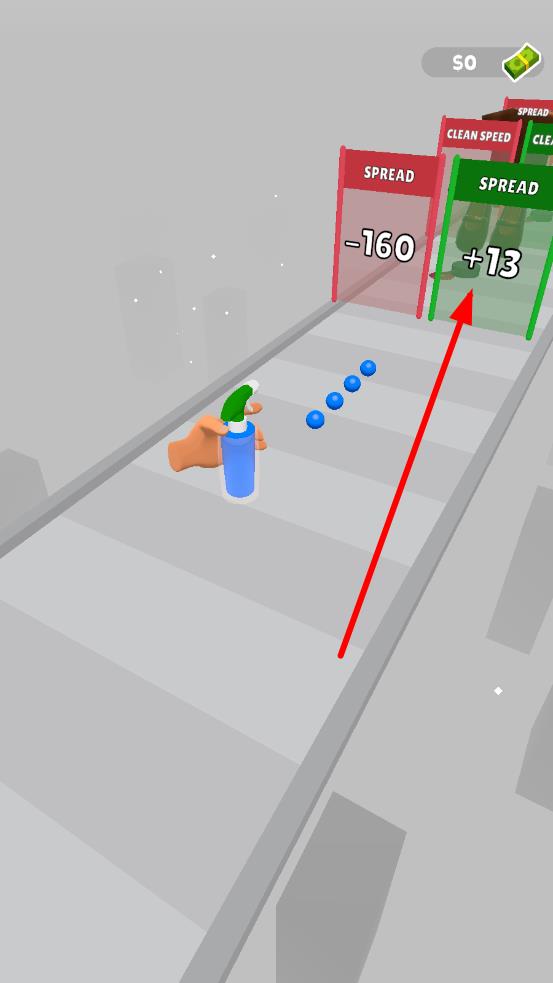 1、進(jìn)入游戲,滑動屏幕,調(diào)控噴霧噴射方向,沿延伸道路移動時,收集散落的藍(lán)色小球,觀察前方紅綠門扉的屬性標(biāo)識,預(yù)判噴霧的行走方向。