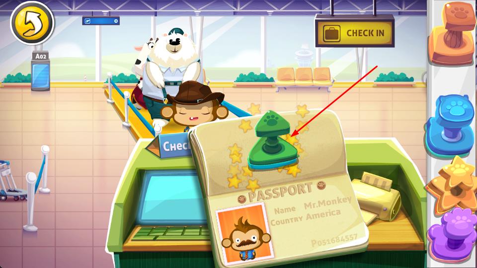 2、彈出動物護照如Mr.Monkey,從右側印章欄選對應印章,然后就點擊護照完成蓋章。