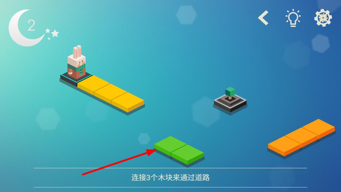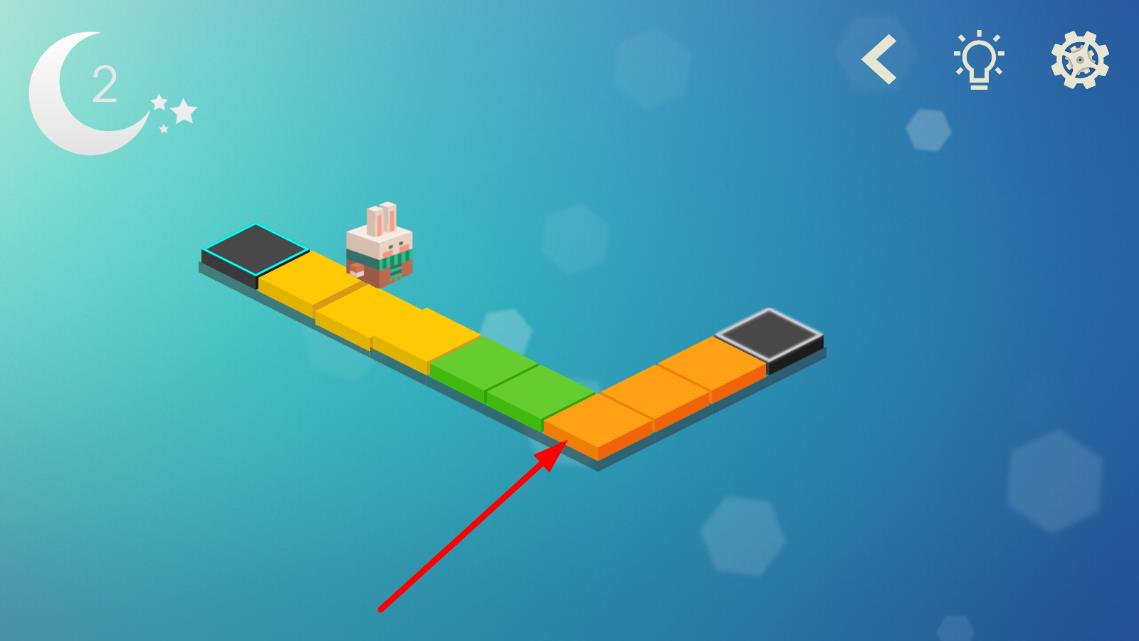 2、中期關(guān)卡中規(guī)劃方塊搭建路線,合理擺放不同顏色方塊形成通路,避開空隙,確保小兔能沿搭建的路徑跳躍前進。
