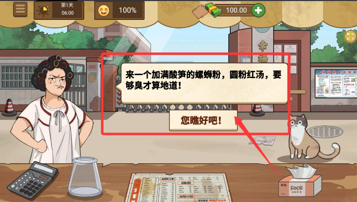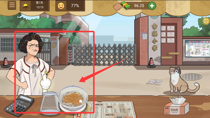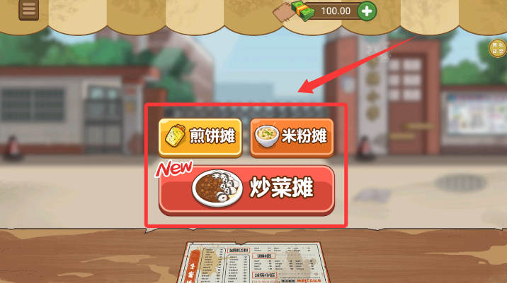 1、啟動游戲后,挑選心儀的小吃攤位如煎餅、米粉、炒菜,開始營業(yè)準(zhǔn)備。