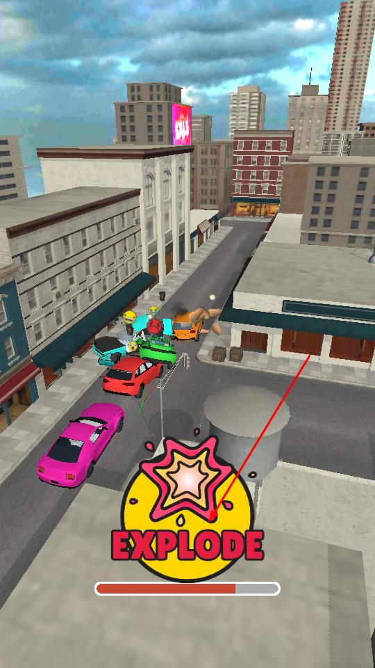 3、點(diǎn)擊下方EXPLODE按鈕,觸發(fā)爆炸技能,摧毀周?chē)?chē)輛,獲取獎(jiǎng)勵(lì),就能夠去查看游戲進(jìn)程。