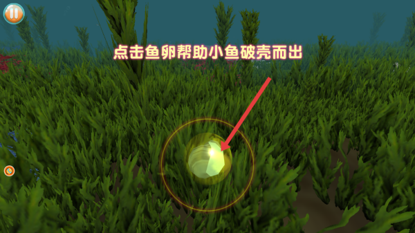 1、進(jìn)入海底場景,開局按照提示點(diǎn)擊魚卵,幫助小魚破殼而出,完成小魚的孵化,進(jìn)入海洋后,控制小魚移動。