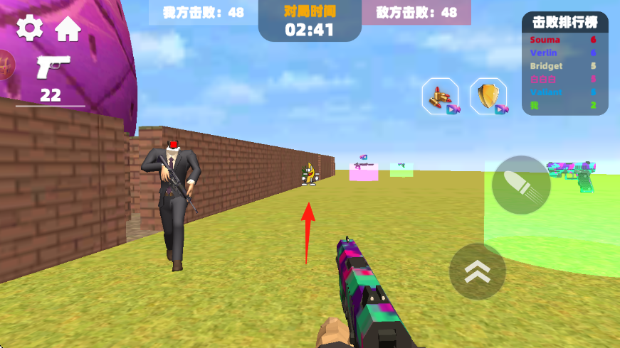 2、跟隨箭頭指引,轉移戰(zhàn)場,追擊敵方單位,注意利用場景如磚墻掩護,躲避反擊。