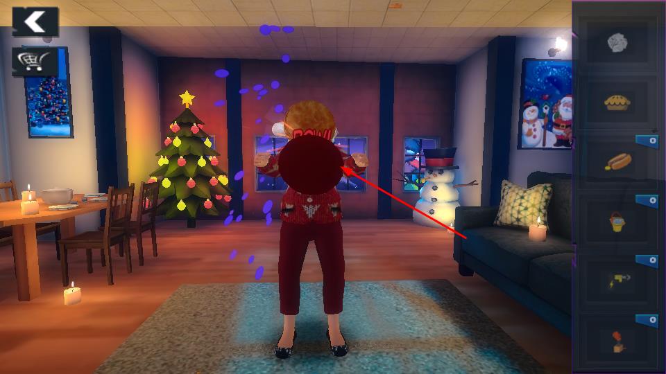 2、進(jìn)入裝飾有圣誕樹、雪人擺件的室內(nèi)房間,靠近紅色圓球等物品,觸發(fā)互動(dòng)并拾取,右側(cè)物品欄將顯示已收集道具。