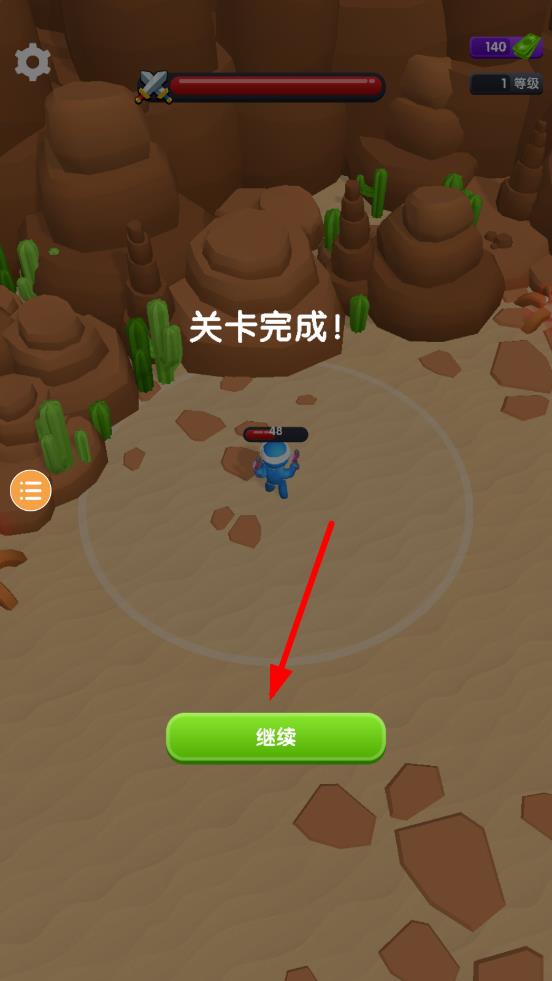 3、擊敗所有敵人后,屏幕顯示關(guān)卡完成,點擊繼續(xù)進入下一關(guān),挑戰(zhàn)更密集的敵人陣容與復(fù)雜地形,突破沙漠戰(zhàn)場的層層考驗。