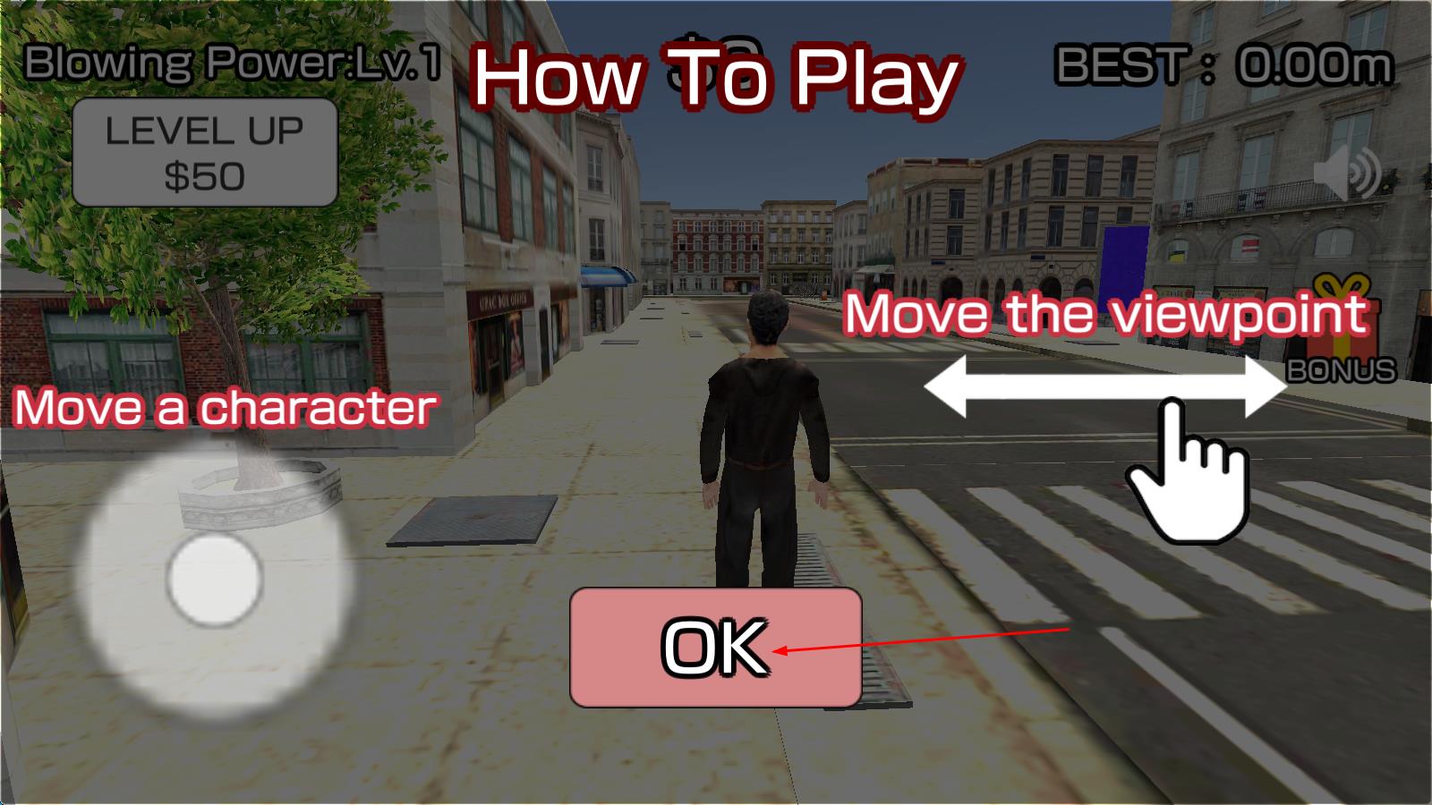 1、角色撞擊:移動角色至汽車行駛路線上,主動被撞擊,利用被撞飛的距離獲取更多的金錢,距離越遠收獲收益越高。
