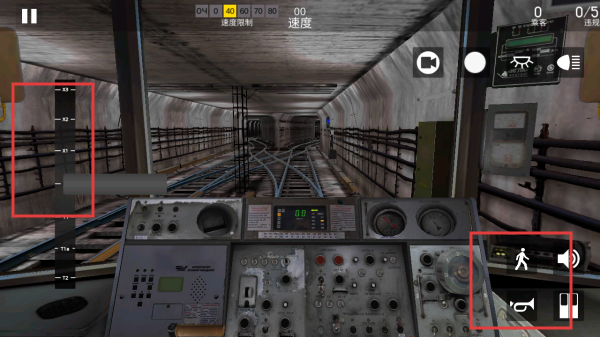 3、進(jìn)入列車駕駛界面后,可通過右側(cè)的按鈕控制列車的相關(guān)操作,同時留意左側(cè)的速度等顯示,確保列車安全行駛。