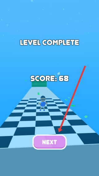 3、成功通關(guān)后,點(diǎn)擊界面底部紫色NEXT按鈕,結(jié)束當(dāng)前關(guān)卡,進(jìn)入下一關(guān),開(kāi)啟新的方塊堆疊跑酷挑戰(zhàn)。